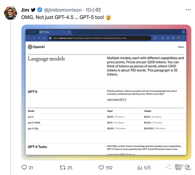 还有网友贴出一张GPT-5定价截图,引起大家关注。