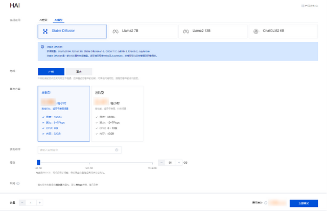(HAI购买界面,可以自动匹配云资源)