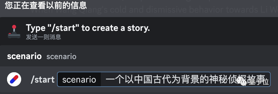 选择Start频道,然后输入“/Start”回车,输入提示词即可。