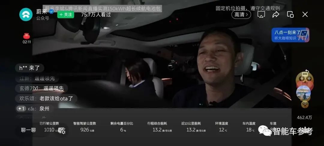 而近期热度最高的,莫过于才结束的蔚来150kWh固态电池续航直播测试,14小时从上海开到厦门,累计跑了1044公里,最后表显还有30公里续航。