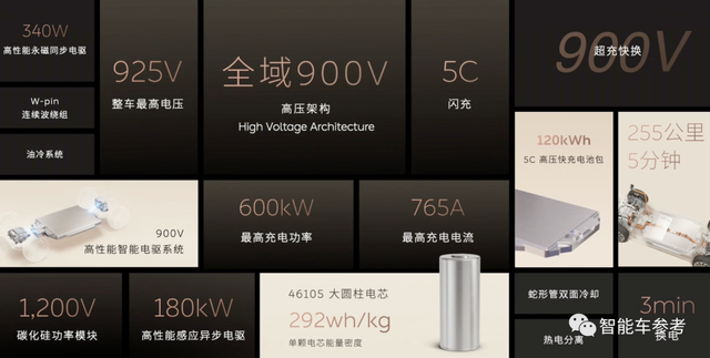 自研智驾芯片工艺、参数拉满,900V架构实现“1秒钟850m”的补能能力、线控底盘、超充桩等等技术一次性释出,而且还是领先行业的水平。