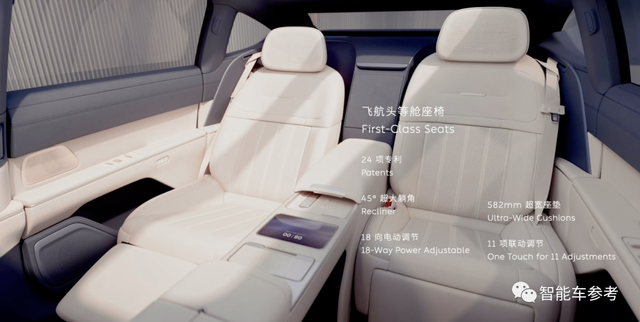 李斌尤其强调了后排头等舱座椅,有24项自研专利, 实现45度最大靠背调节。582毫米坐垫宽度。行政旗舰轿车一项重要配置是隐私设计,而ET9有七扇电动遮阳帘,可以一键开启。