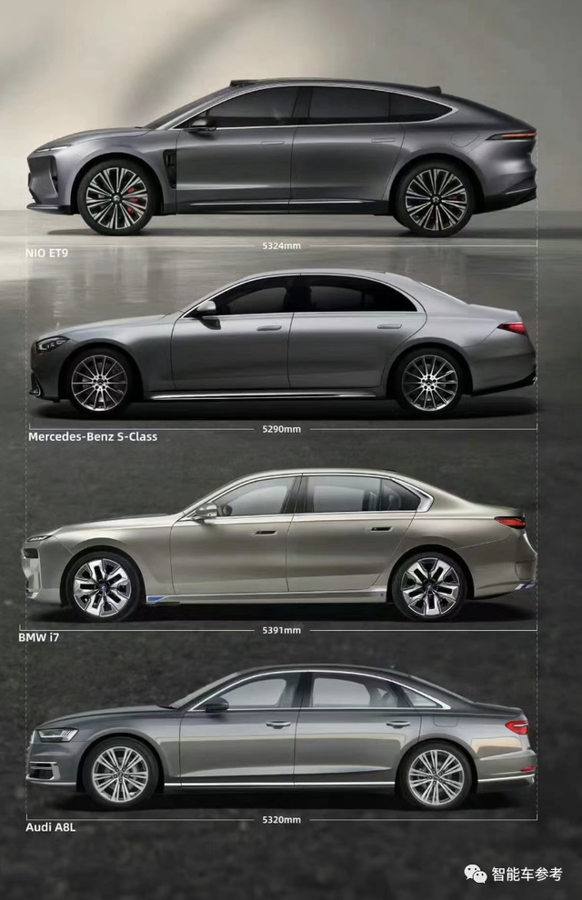 ET9是一款D级行政轿车,突出长轴距和超豪华,通常用在商务、政务等等场景。