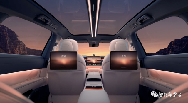后排每个座椅都配了14.5 英寸交互屏,屏幕的角度可以随座椅位置智能调节。
