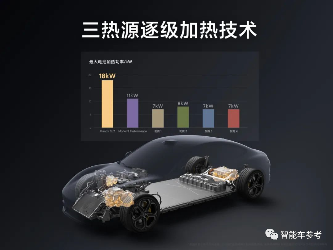一个是小米高效双模热泵技术:零下20度,热泵依旧从冷空气中吸取热量;另一个是小米首创三热源逐级聚能技术,可以将电驱生产的余热、压缩机、加热器的热能逐级聚拢,传递给座舱。