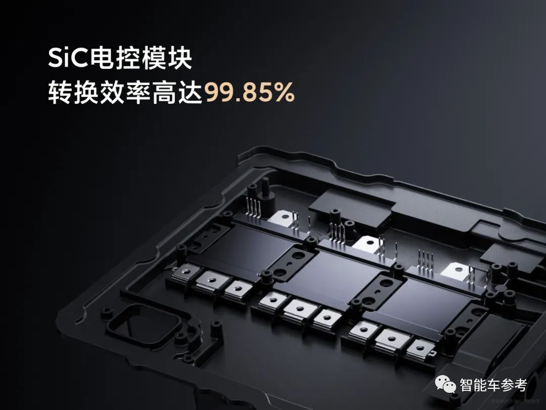 同时小米还重新设计了定转子,以及SiC电控模块,转换效率达到99.85%。