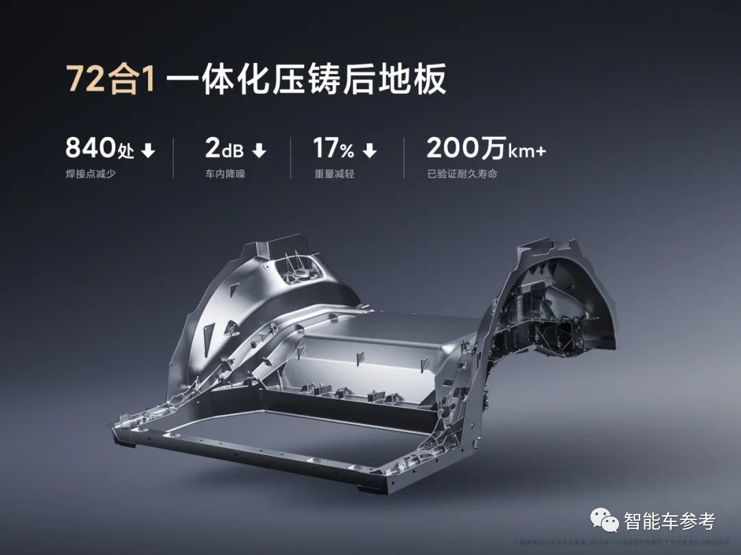 这使得一体化压铸后地板焊接点减少840处、重量减轻17%、使用寿命超过200万公里。