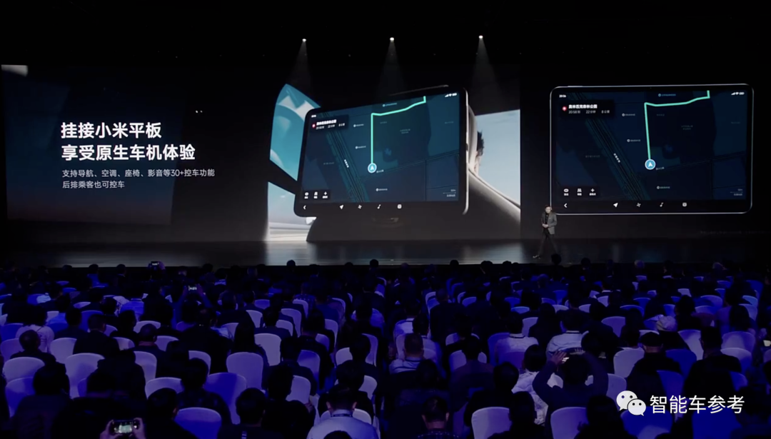 另外还有两块是后排座椅上的拓展屏,比如小米Pad可以直接接入,“一秒变车机”实现控车: