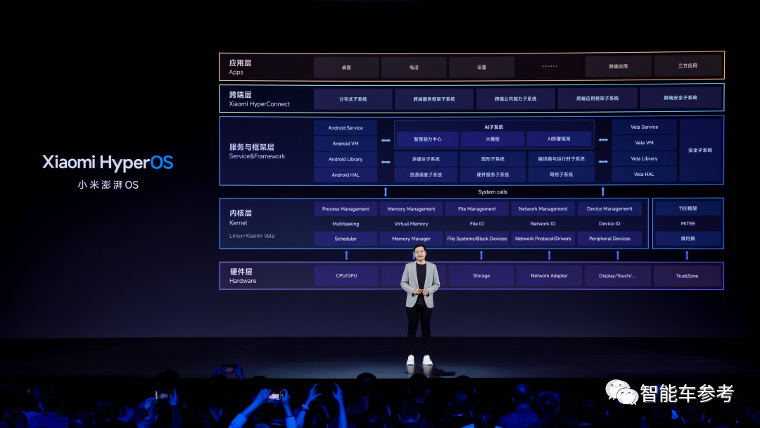 小米澎湃OS一方面做到了把车载OS融进了大的嵌入式系统底座;另一方面这个嵌入式的系统底座,也是各种硬件设备控制的管理系统。
