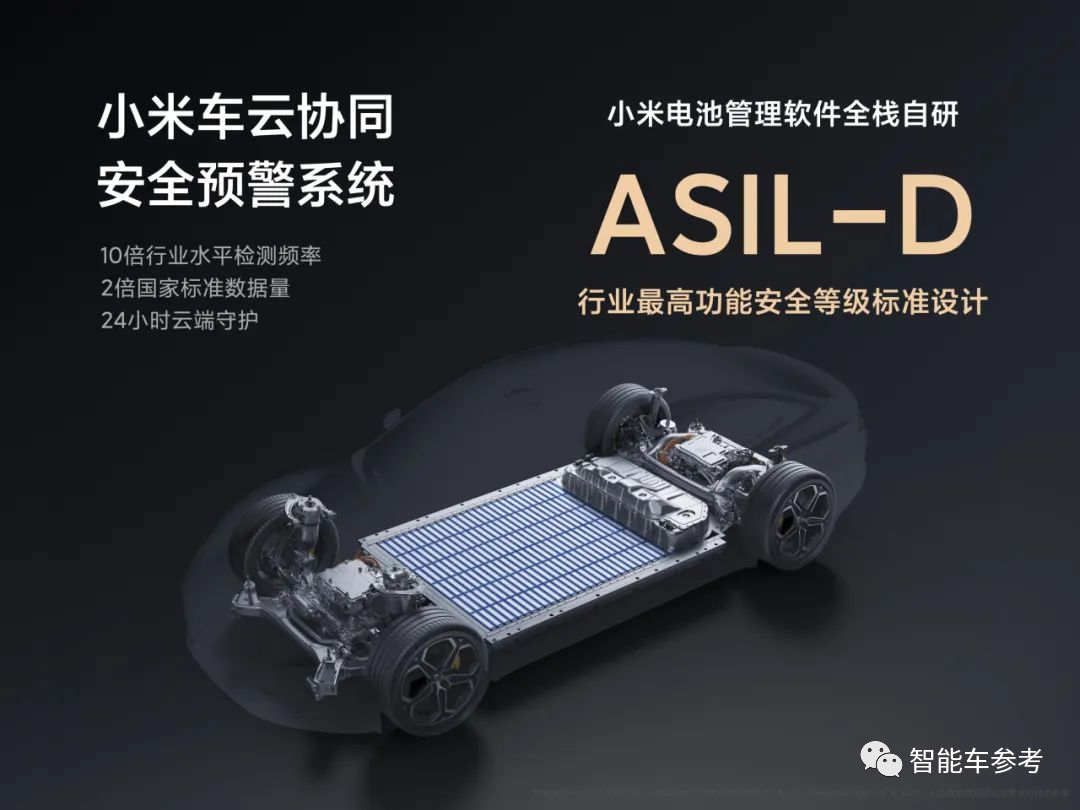 小米SU7搭载的车云协同安全预警系统也将发挥作用,每秒能检测电池800多个信号;还有全栈自研的电池管理软件,紧急情况下可在4毫秒内切断电流。