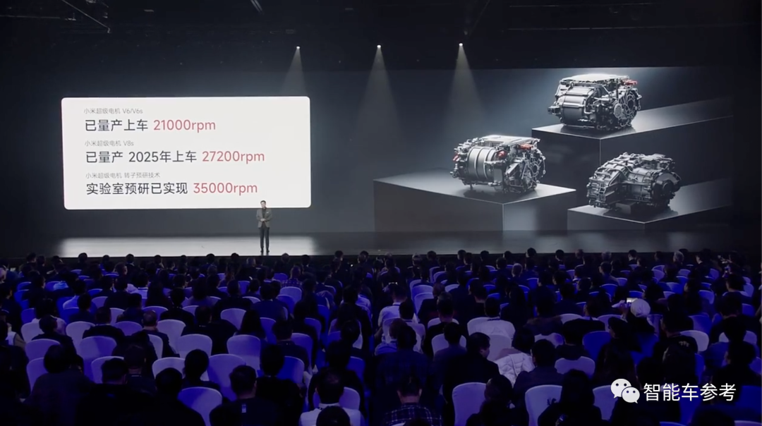 同时,雷军还预告了完全自研的下一代电机——超级电机V8s,转速直接达到27200rpm,比行业最领先水平还要高113%。