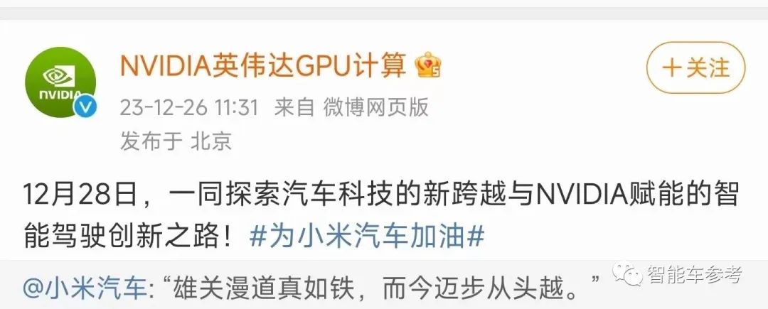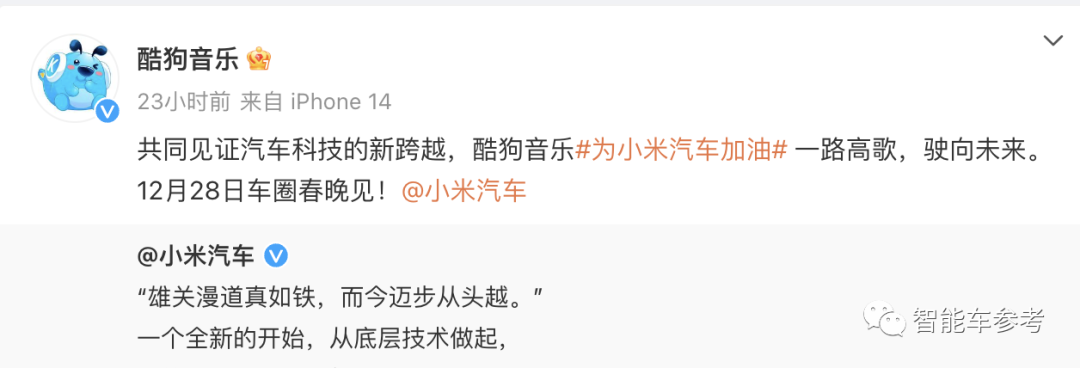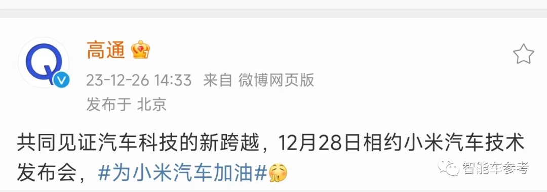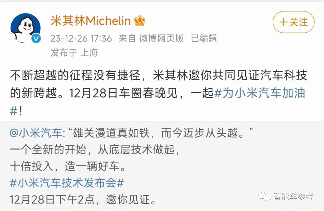 官宣技术发布会定档12月28日后,雷总发微博就离不开小米汽车了。