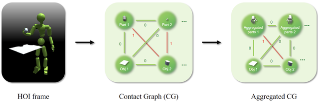 CG的节点由机器人的肢体部件和物体组成;每条边则是一个二进制接触标签,只表达“接触”或“不接触”两种状态。