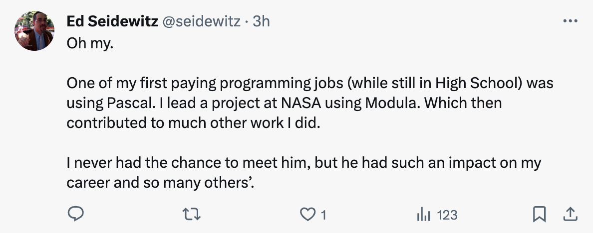 面对Niklaus Wirth的离世,网友们纷纷悼念: