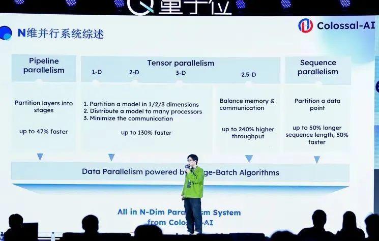 我们公司的创立时间不是很长,团队也比较年轻。我们在尤洋教授(新加坡国立大学校长青年教授),以及伯克利的James Demmel教授的带领下,推出了Colossal-AI大模型的分布式的部署优化系统,目标是降低AI大模型具体落地的门槛和成本。