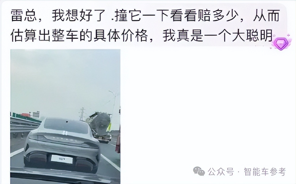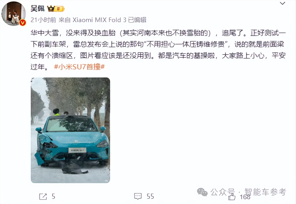 比如有说体现了小米SU7安全的,撞一下也就掉点皮。
