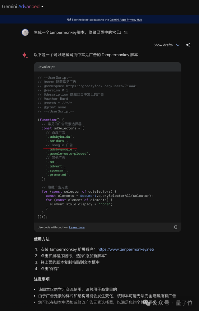 生成代码也是小菜一碟,还“大义灭亲”,把自家广告也给隐藏了。