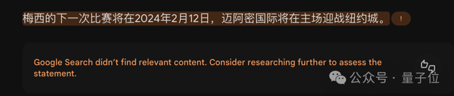 最后的谷歌G图标,代表使用搜索引擎核查AI生成的答案是否准确,结果同样也会用“绿色-有引用来源”,“黄色-无引用来源”的形式标出来。