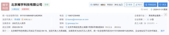 公司早期产品有Glow和Inspo,登记公司为北京稀宇科技,法人代表是周彧聪。