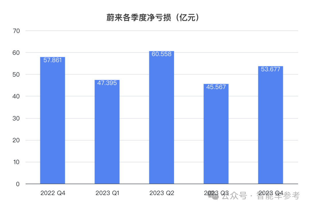 净亏损略有收窄,为53.677亿元,同比减少7.2%,环比增加17.8%,差不多是每卖一辆车还要亏10.7万——不过相比全年,已经在收窄了。
