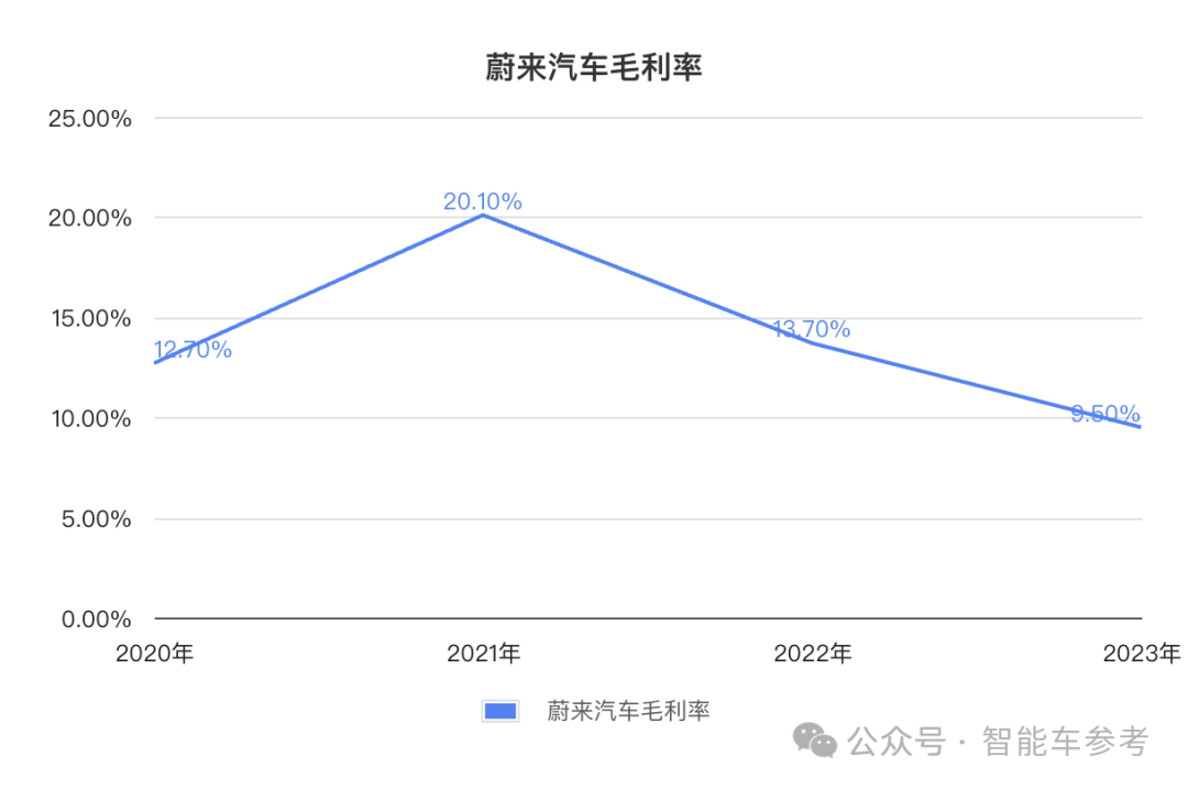 2023年蔚来车辆毛利率为9.5%,比2022年减少4.2个百分点。
