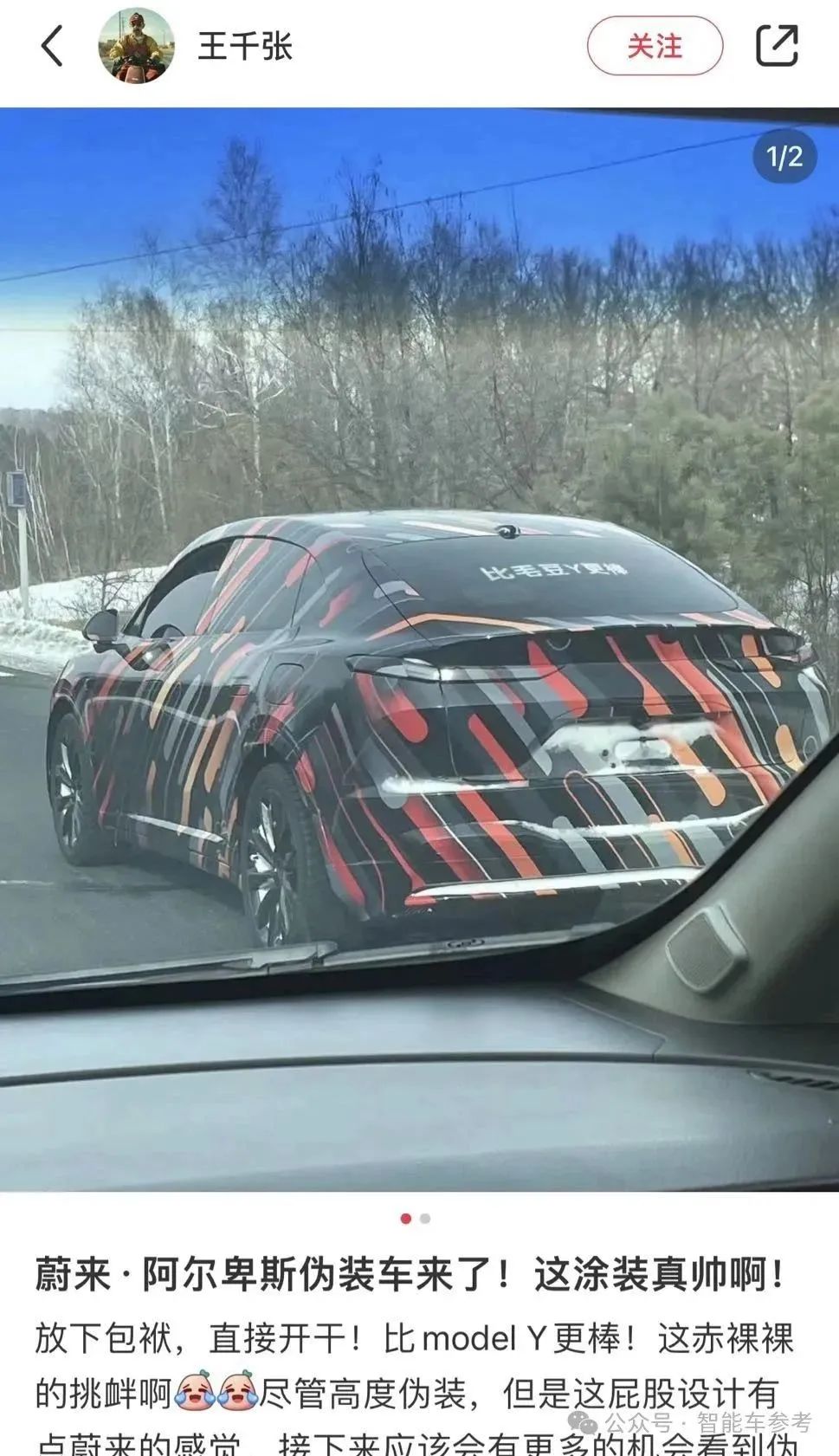 首款车最近正在展开测试,谍照已经流出,李斌确认这款车就是对标Model Y,而且是可换电的Model Y。(甚至伪装车上也贴了“比毛豆Y更棒”)