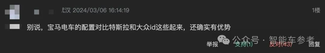 但也有网友认为宝马纯电车的配置和特斯拉、大众ID.4比起来确实有优势。