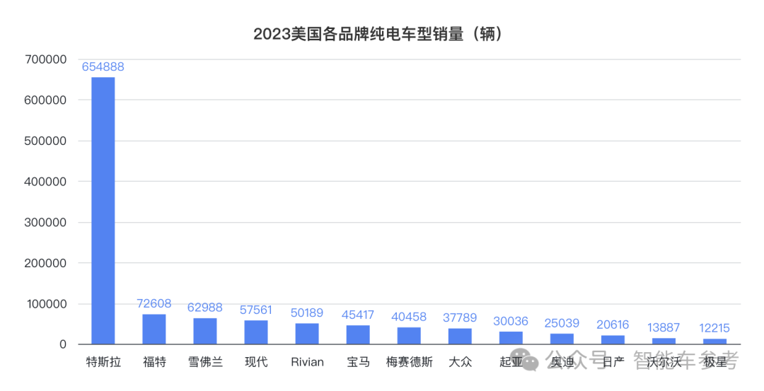 众所周知,美国纯电市场老大只有特斯拉,常年占据50%以上的市场份额。