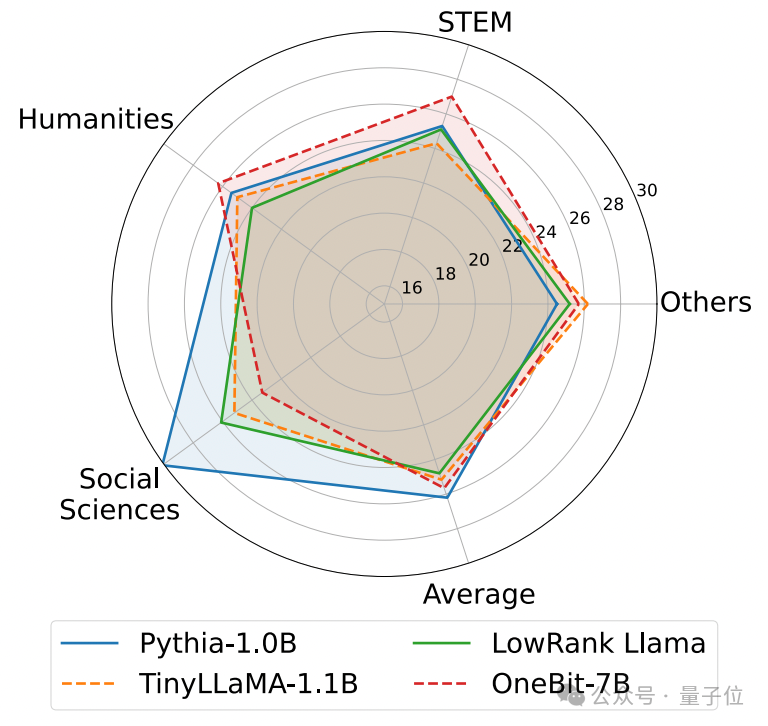 同时作者也发现,OneBit-7B模型在社会科学领域出现较严重的知识遗忘。