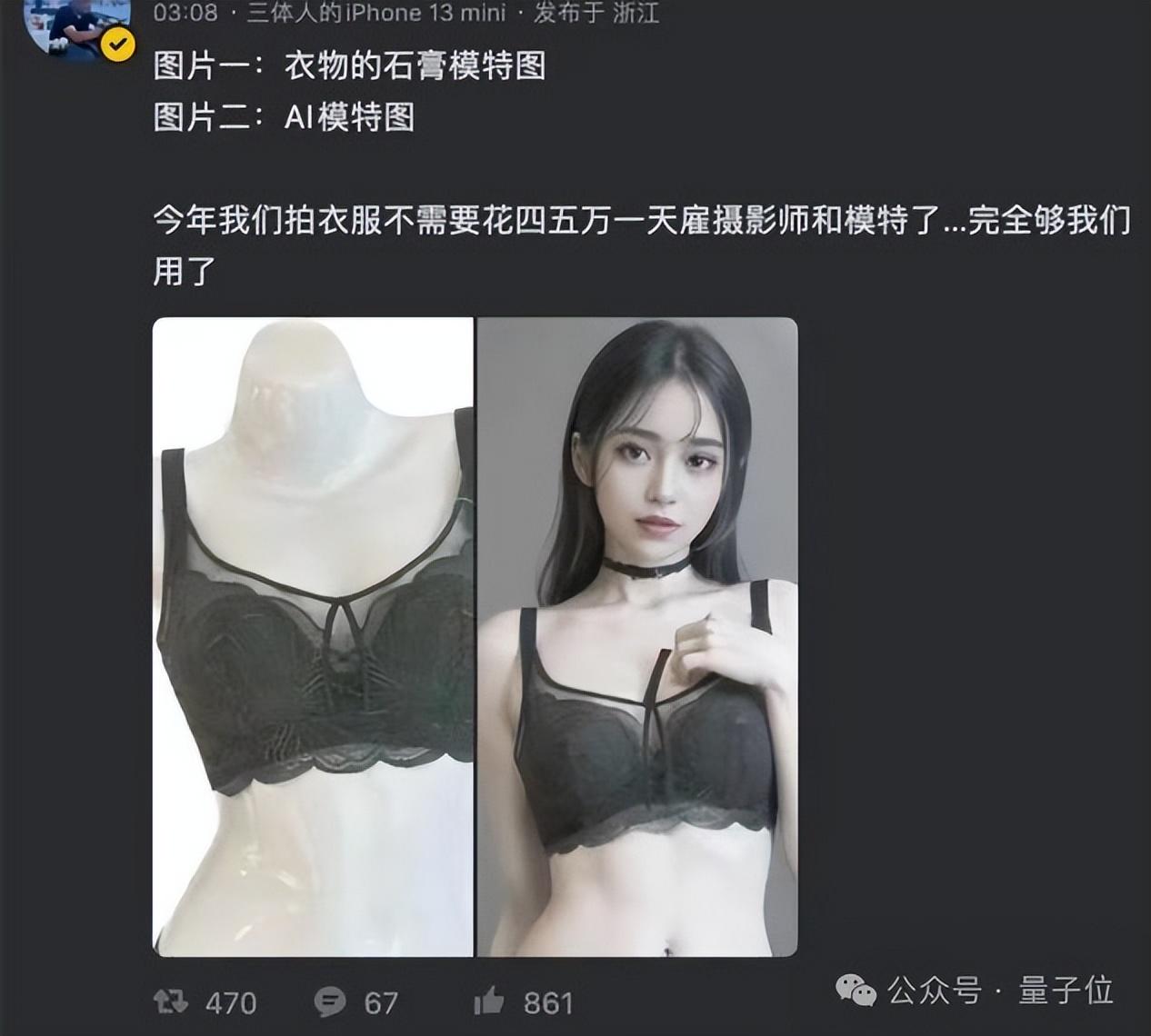 最明显的例子,就是AI模特的兴起。利用Midjourney即可生成与真人模特别无二致的效果,一下子省去了几万块的成本。