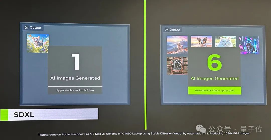 如果代入到实际工作中,在笔记本4090上用SDXL生图的速度,是苹果最新的M3 Max的6倍。