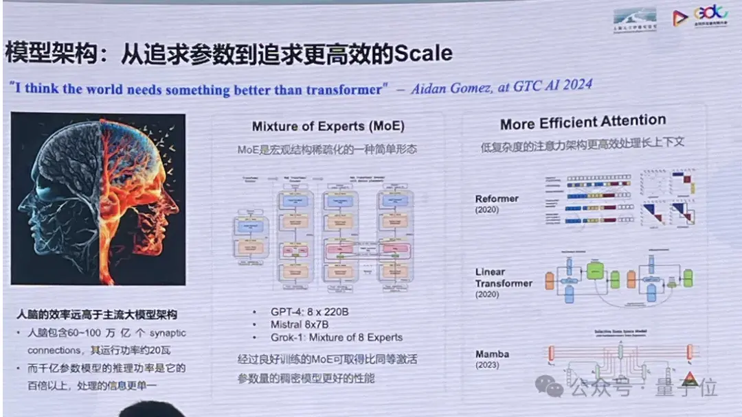 其中,MoE值得关注,业界同时在探索Mamba模型等,以低复杂度的注意力架构更高效地处理上下文。