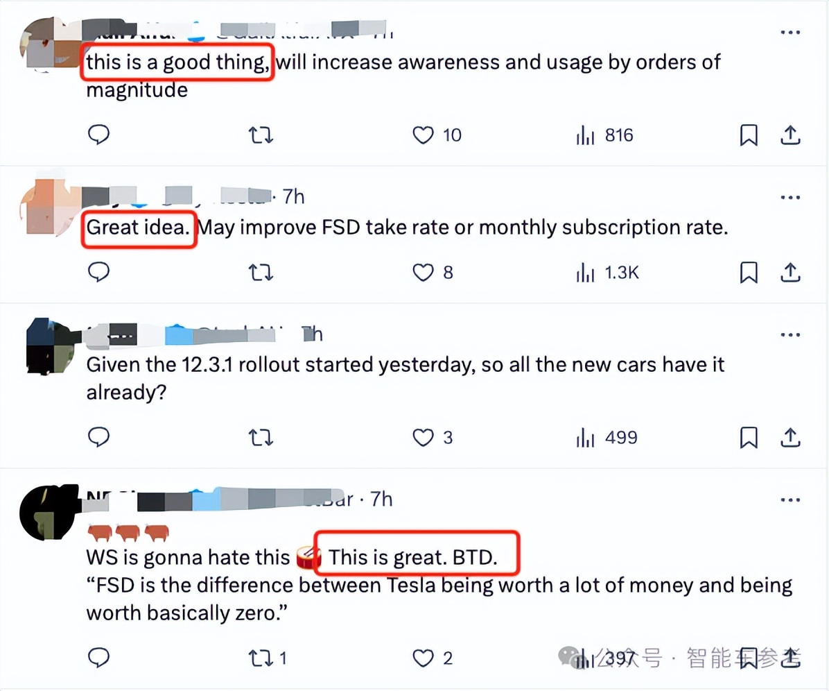 有分析认为,这表现出马斯克对FSD的自信,FSD进化到了一个足够强,能普及的程度,促使马斯克做出这样的指示。