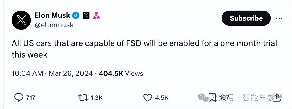 FSD最近能力的进化也将有助于订阅规模的扩大。