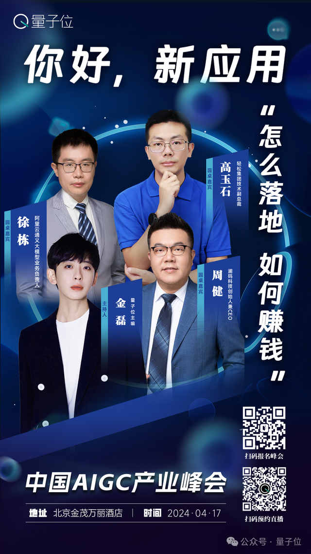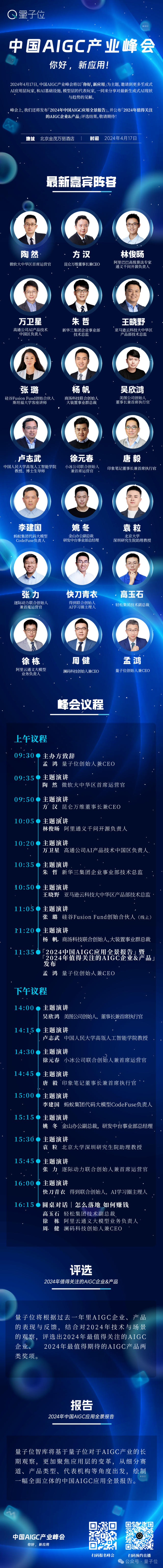 这,便是量子位即将在4月17日举办的中国AIGC产业峰会,以“你好,新应用”为主题,共讨AIGC正在重塑的新世界。