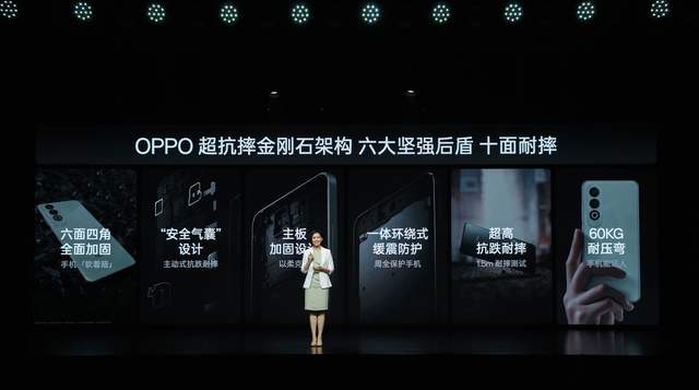 在轻薄机身基础上,OPPO K12在机身结构设计上也进行了全面升级,采用独家自研的「超抗摔金刚石架构」,针对手机屏幕、背盖、四角、四边,OPPO K12都做了加固,实现十面耐摔。