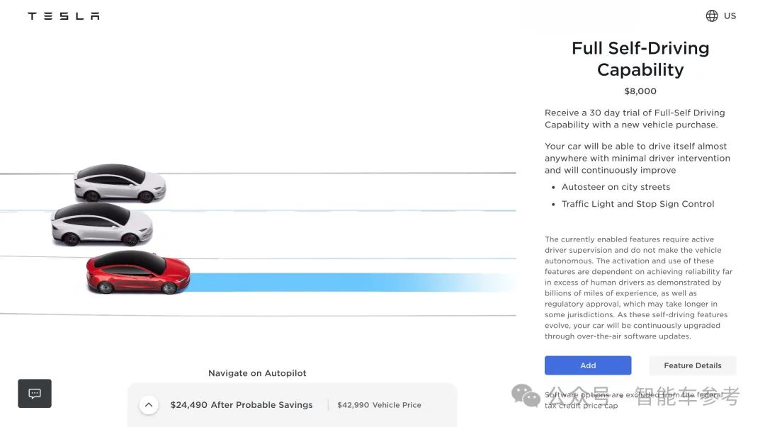 另外,特斯拉还在美国官网删除了选配EAP的选项,同时已经订购EAP的车主可以花2000美元(约1.4万),而不是3000美元(约2.2万),就能把系统升级至FSD。