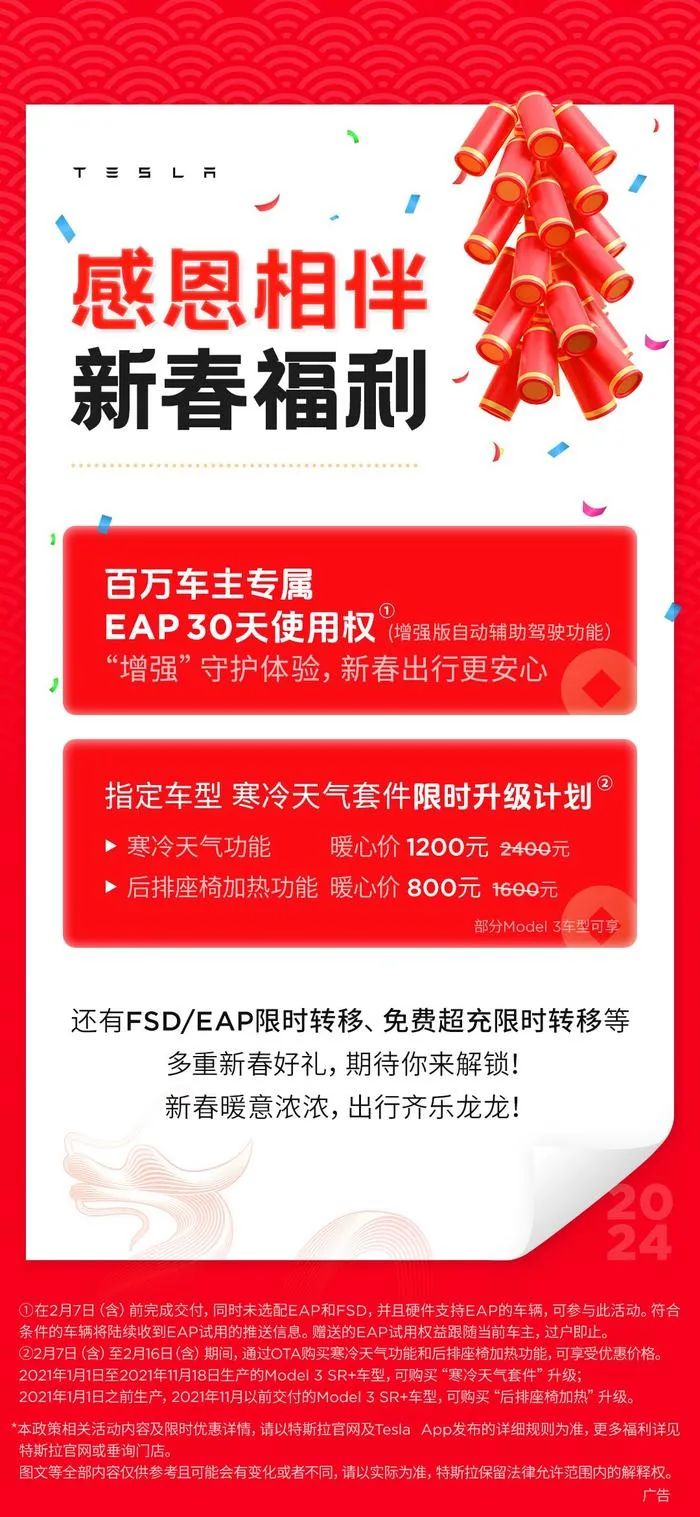 在今年2月时,特斯拉就对2月7日前完成交付、且未选配EAP或FSD的特斯拉车主推出可免费试用EAP 30天的福利。