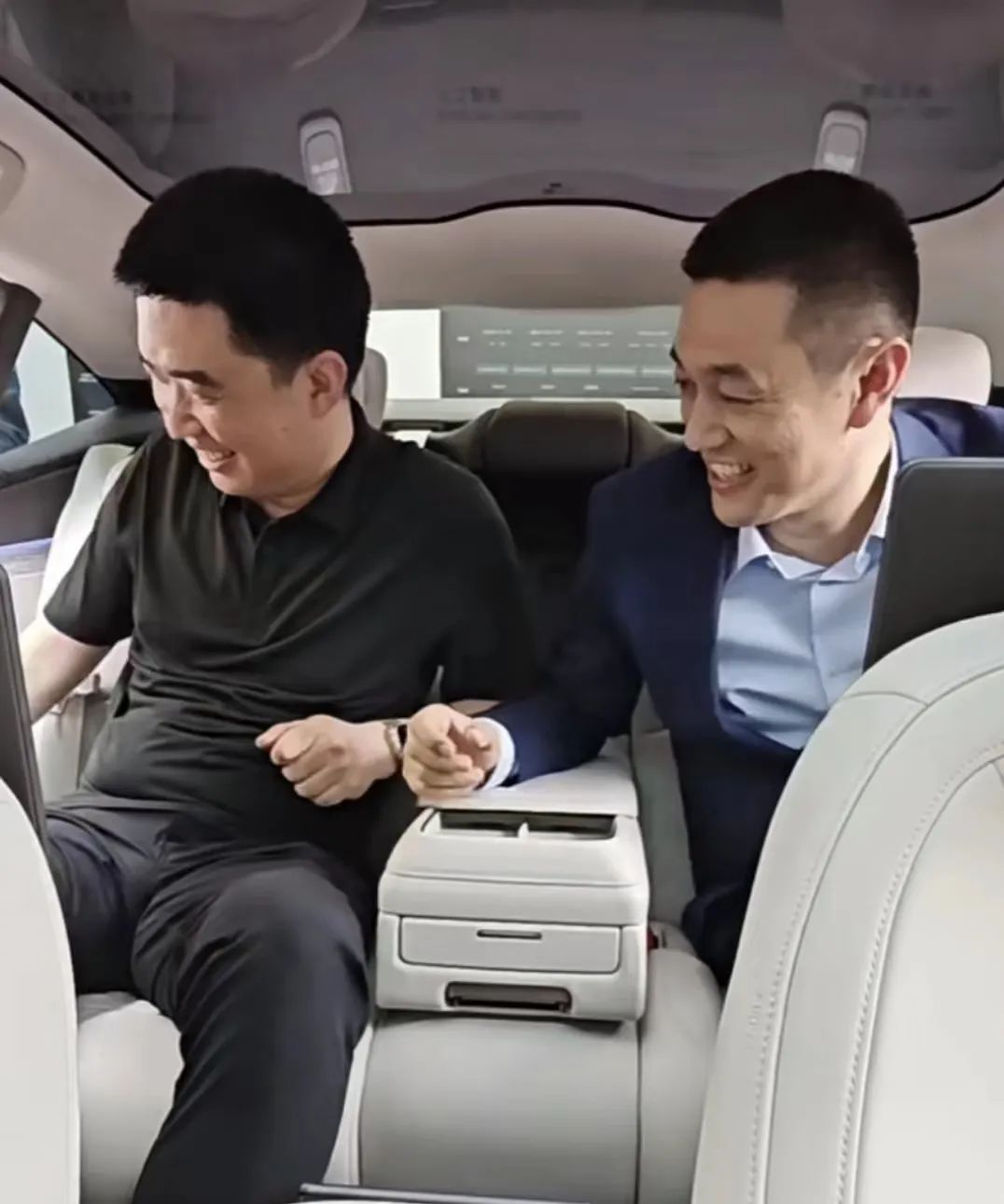新款ET7同时还迎来了何小鹏,何小鹏在车内感慨,李斌和自己造车,都变瘦了。