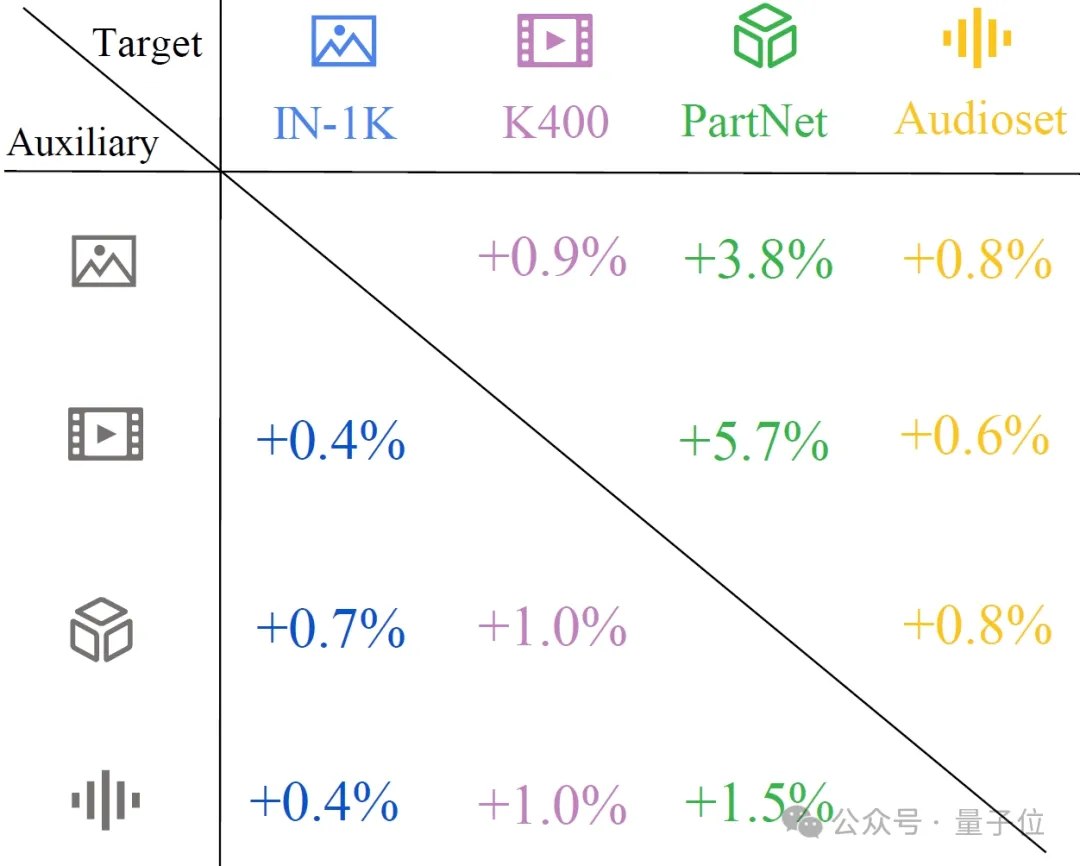 比如训练一个图像分类模型,除了标注好类别的图像数据集,增加视频、音频、点云等模态数据,也能显著提升模型在图像分类上的性能。