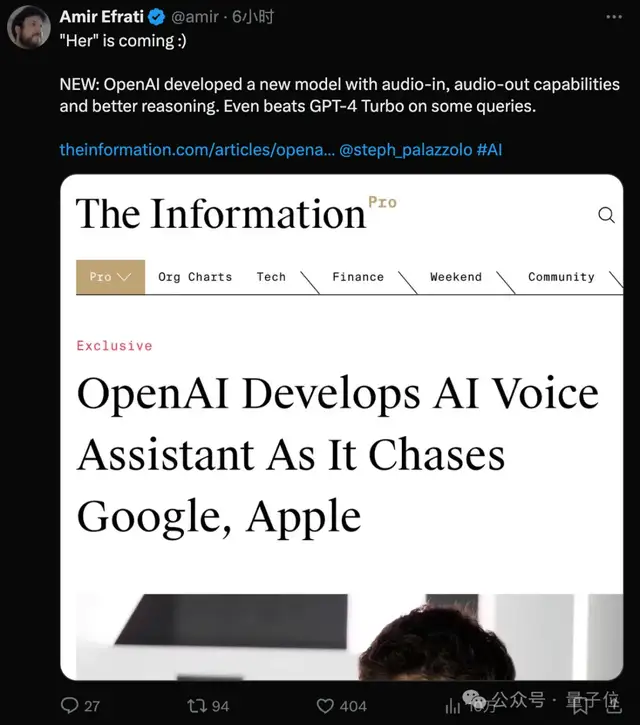 根据科技媒体The Information消息,OpenAI正在开发一种新的AI语音助手。