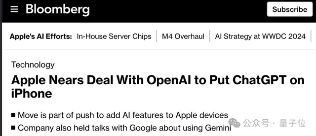 来自彭博社的消息指出,苹果接近与OpenAI达成合作协议,将以某种形式将ChatGPT引入iPhone手机。