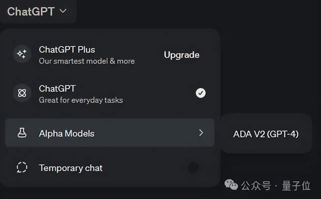 部分用户在ChatGPT页面的Alpha Models中可以看到有一个名叫ADA V2(GPT-4)的模型。