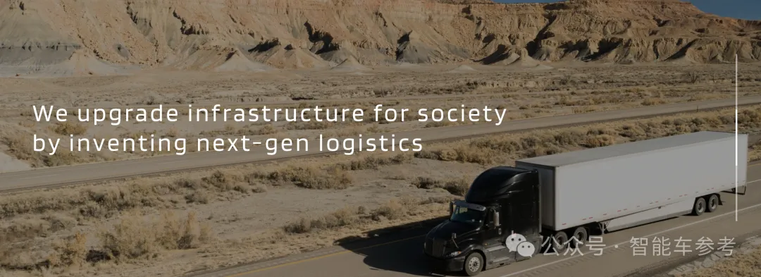 第三句直接点明了业务:“我们开发并运营中程货运自动驾驶卡车”: