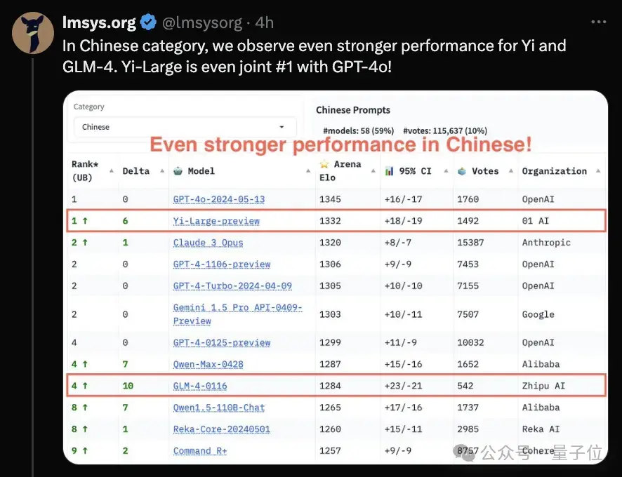 黑马!大模型竞技场榜单更新,国产玩家首次进入全球总榜前10