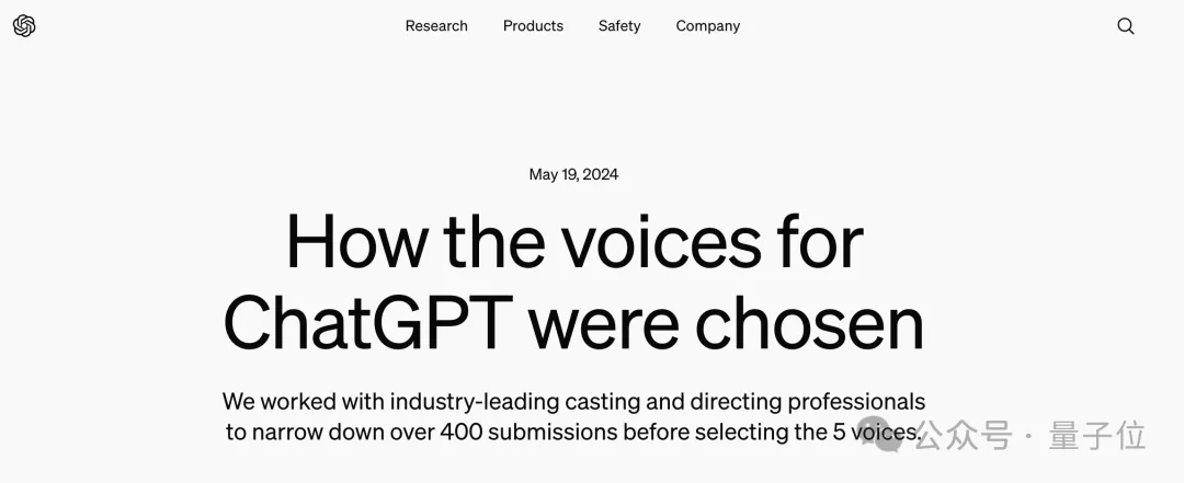 同时,OpenAI还附上了一则官网中的声明,介绍了ChatGPT中声音的选择流程。