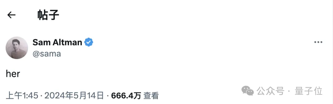 在GPT-4o发布的那天,奥特曼还发了一条推文,内容只有一个“her”,寡姐认为奥特曼这是在暗示使用和自己相似的声音就是故意的。