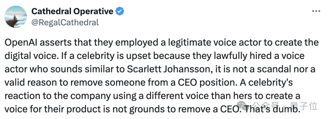 如果OpenAI所述为真,确实没有用寡姐的声音,那么即使她本人感到担忧,也不能把这件事称之为丑闻。