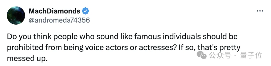 当然,这件事到现在还没有被实锤,OpenAI也做出了辩解,网友们认为,如果声音和名人真的只是相似的话,那就没有被禁止的理由了。