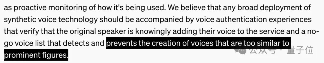 不过今年3月,OpenAI在发布声音合成引擎Voice Engine的时候,就有提到过采取了措施避免克隆公共人物的声音。